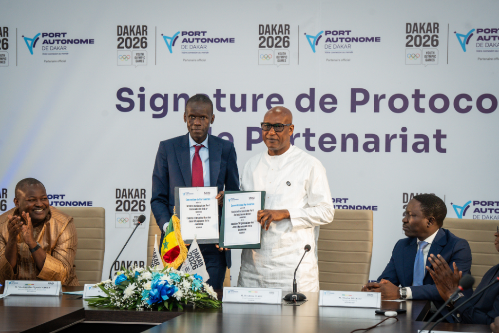 La cérémonie de signature entre le Port autonome de Dakar et le Cojoj s’est tenue ce mercredi 4 mars en présence de M. Ibrahima Wade, Coordonnateur général du Comité d’Organisation des Jeux Olympiques de la Jeunesse Dakar 2026, et de M. Waly Diouf Bodian, Directeur général du Port Autonome de Dakar. Elle consacre la mobilisation des grandes institutions publiques autour de cet événement historique, premier évènement sportif olympique organisé en Afrique.